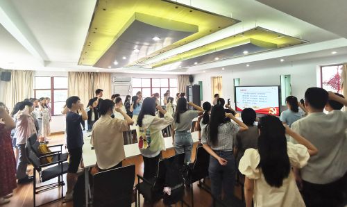 最后,王志带领全体毕业生党员面向党旗,重温入党誓词。