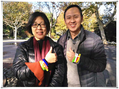 学院工会在长风公园内共设5个打卡点,分别是“生态+”打卡点——夕照廊前、 “国际+”打卡点——朝霞榭前、“智能+”打卡点——长风海洋世界前、“健康+”打卡点——铁臂山石像前、“教育+”打卡点——少先队群像前。参加健步走活动的老师们在每个打卡点的工作人员处领取各色带有“h动漫 ”字样的幸福手环,最后进行手环计数。