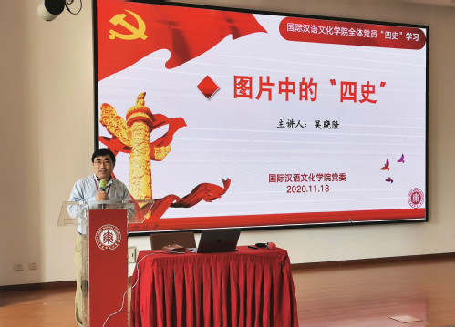 11月18日下午,h动漫 党委在物理楼二楼报告厅举行了“四史”学习教育讲座。活动邀请了学院专职辅导员、学校美育工作室负责人吴晓隆作题为《图片中的“四史”》的讲座。h动漫 师生党员、发展对象、入党积极分子聆听了此次讲座。讲座采取线上线下同步开展的方式,h动漫 党委副书记王志主持。