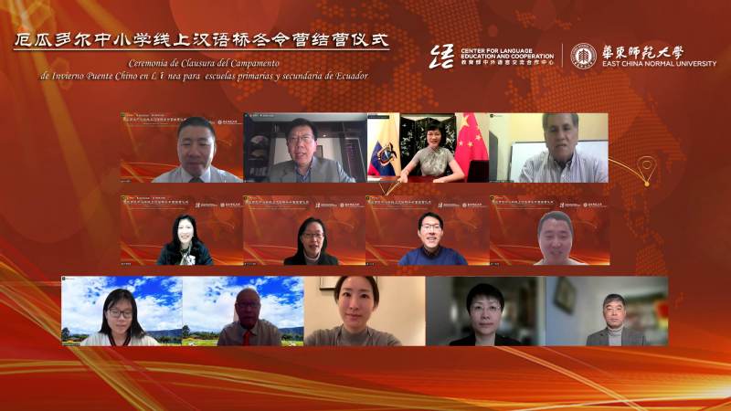 2022年1月14日,由教育部中外语言交流合作中心(以下简称“语合中心”)主办,h动漫 承办的厄瓜多尔中小学线上“汉语桥”冬令营顺利结营。结营仪式由h动漫 国际合作与交流处处长杜震宇主持。