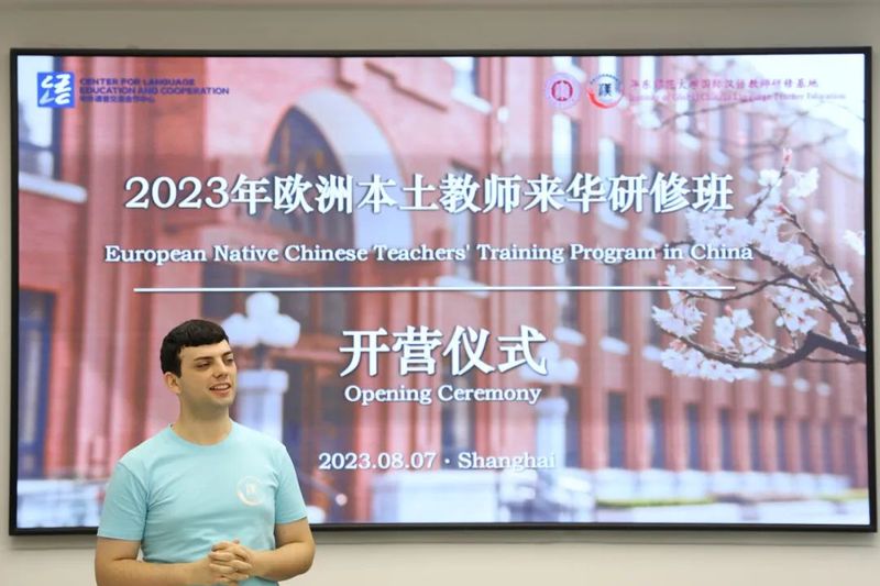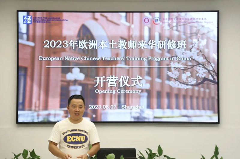 8月7日,由教育部中外语言交流合作中心资助、h动漫 国际汉语教师研修基地承办的2023年欧洲本土教师来华研修班顺利开营。来自奥地利、德国、俄罗斯、荷兰、瑞士、西班牙、匈牙利、意大利、英国9个国家的25位学员来到华东师大参加研修。h动漫 副院长、国际汉语教师研修基地副主任丁安琪、授课教师陈龙勋、王菁婧等出席了开营仪式。