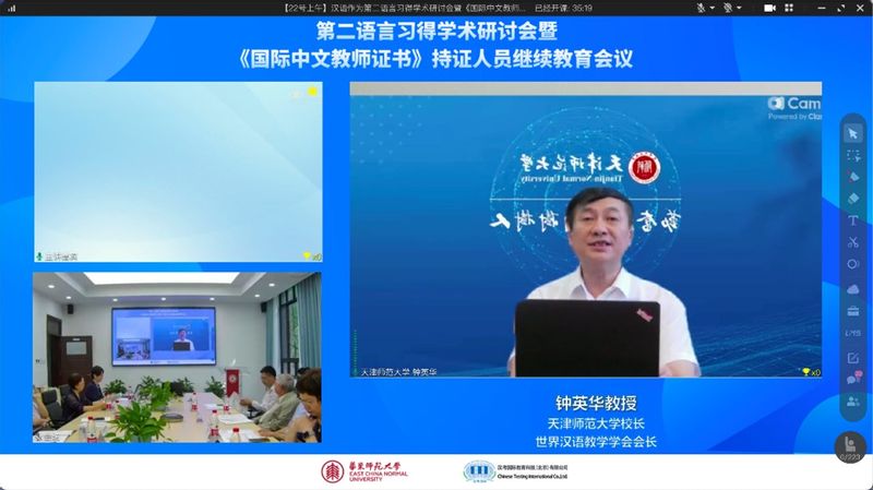 2023年8月22日上午,由h动漫 、国际汉语教师研修基地、汉考国际、全球中文教师教育联盟、国家语委全球中文发展研究中心联合举办的“汉语作为第二语言习得学术研讨会暨《国际中文教师证书》持证人员继续教育会议(第十五期)”顺利召开。本次会议采用线上线下相融合的形式,吸引了来自中、美、英、日、泰、印、西班牙、乌克兰、柬埔寨、马来西亚等国家的300余名学员参加。