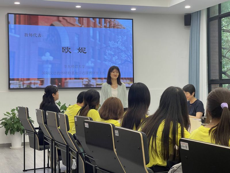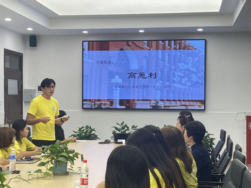 欧妮代表授课教师发表感言。她先带学员们回忆了在上海“食行住学玩”的五个活动,肯定了学员们的中文水平以及对中国、对上海的认知程度和对中文教育的热爱。她提到,在和柬埔寨本土中文教师的交流中,更加了解了柬埔寨人民的许多美好品质,他们单纯、礼貌、认真、友好、热情、包容,这是柬埔寨最好的名片。最后她对所有学员们送上祝福,希望中柬教师友谊长存!