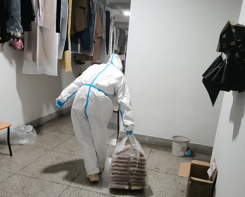 负责七层的三餐发放的学生党员初伊分享了她印象最为深刻的场景。“我看到二楼楼梯口站着的封控人员、看到学校物资在极度紧缺的情况下,还为我们每一位志愿者准备了一整套防护服,能够感受到自己是被学校保护着的。其实作为志愿者,能做的事情并不多,仅仅是把自己负责的一餐中的一部分饭拎到楼上而已,而也正是因为参与到了志愿服务中,才切身体会到比我们忙碌十倍百倍的我们的层长、楼长、学校,为我们所作出的付出和努力。”
