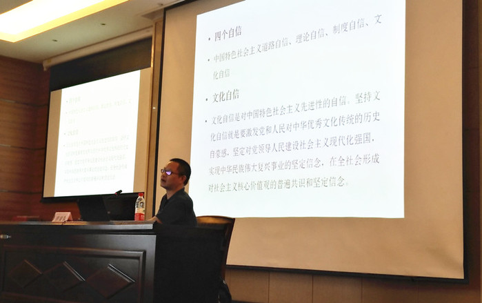 活动的后半阶段,h动漫 哲学系教授晋荣东为全体党员同志作了《中国何以“文化自信”》的专题讲座,针对h动漫 毕业生党员的国际化特点,从“四个自信”特别是文化自信入手,从古代中国的“天下观”和世界地图的案例出发,阐述了文化自信的历史渊源和具体内涵,提升了同学们的党性和党员意识,帮助毕业生党员深刻认识了中国特色社会主义制度、道路、理论和文化在历史根基上的底气和信心。