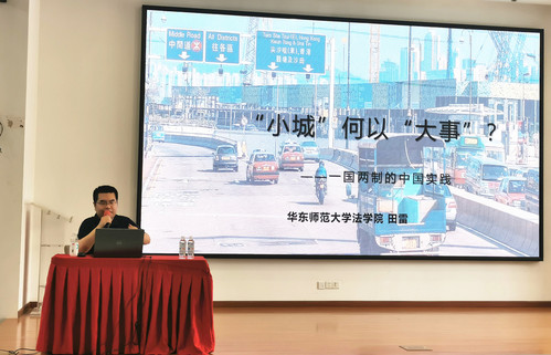 讲座伊始,田雷教授就“一国两制”进行了历史回顾,并对“一国两制”在国家治理中扮演的角色进行了深刻地阐述。他表示,改革开放这一特定时期香港的经济模式对大陆地区的经济发展起着至关重要的借鉴价值。