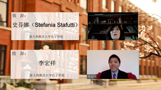 都灵大学孔子学院外方院长史芬娜(Stefania Stafutti)、中方院长李宏祥代表意大利都灵大学孔子学院感谢h动漫 国际汉语教师研修基地为意大利的70余名学生提供了宝贵的学习中文和“云端”体验中国文化的机会。史院长表示都灵大学孔院与h动漫 仿佛亲密无间的一家人,她希望更多年轻的意大利学员通过这样好的平台和机会,学习中文、分享感情。李院长鼓励学员们再接再厉,通过中文更好地了解中国、了解世界、了解自己。