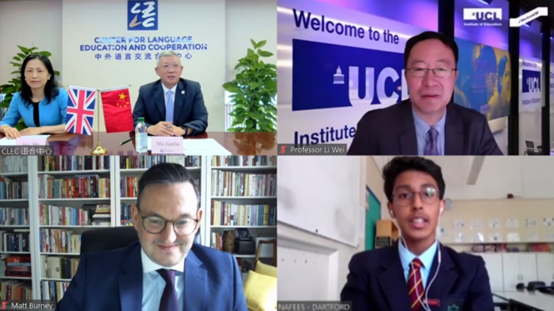 7月4日,2022年“汉语桥”英国“中文培优”项目学生夏令营开幕式在线上成功举行。中国教育部副部长田学军、英国教育部学校事务部长罗宾·沃克(Robin Walker)、英国驻华使馆文化教育公使/英国文化教育协会中国区主任包迈岫(Matt Burney)、伦敦大学学院教育学院院长李嵬出席并致辞,包括h动漫 在内的中国16所参与机构,以及英国64所培优学校的近2000名师生参加开幕式。中外语言交流合作中心主任马箭飞主持开幕式。