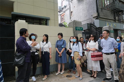随后,参观队伍来到新渔阳里6号,探访中国第一个共青团组织成立之地、“外国语学社”所在地。1920年8月22日,中国的第一个社会主义青年团——上海社会主义青年团在这里正式成立。1920年9月,社会主义青年团成立伊始,在此创设“外国语学社”,以公开办学校的形式,掩护革命活动。教师们沿着革命先辈的足迹,认真领略集人文和历史底蕴于一身的独特风景。