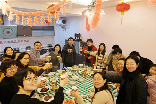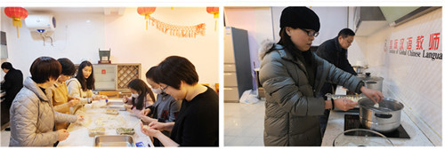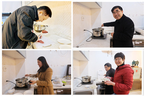 下半场学院工会组织开展了包饺子活动。来到国际汉语教师研修基地厨房,桌上已经准备好了馅料和饺子皮,大家围坐在一起,忙得不亦乐乎,现场一片欢声笑语。老师们将所有美好的祝福包进饺子,将团结和奋进融入其中,使全院上下洋溢着家的味道和温馨。