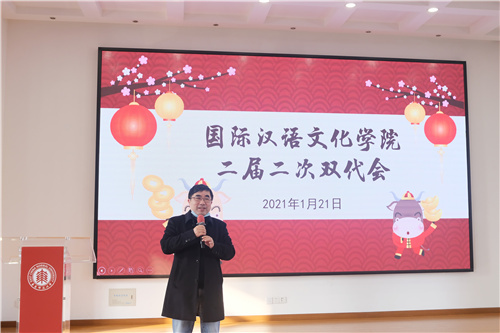院长朱国华致辞,肯定了2020年全院的奋斗成果,激励大家在新的一年里积极进取,共创辉煌。院工会主席肖路作工会总结报告,介绍了参加的业务交流学习,回顾了学院工会近期开展的各项工作,并通报了学院工会2020年度收支情况。院党委书记黄美旭作学院年度工作报告,全面回顾了2020年度学院各方面运行情况,通报了学院财务状况。她指出,2020年意义非凡,我们一起走过,2021年携手前行,万事可期。双代会由院党委副书记王志主持。