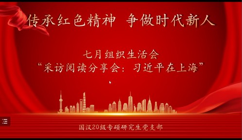 7月23日晚7点,h动漫 2020级专硕研究生党支部召开主题为深入学习“习近平在上海”系列文章的组织生活会,会议由组织委员李秋萍同志主持,支部成员以小组为单位进行分享与讨论。