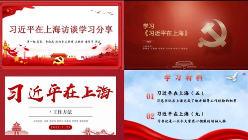 第四组由王廷同志分享“习近平在上海”系列阅读中所反映总书记个人品质,展示了总书记在上海期间的一系列调研工作。王廷同志认为调研和走访的主要目的是重建基层干部群众对市委市政府的信任,重树市委市政府的威信相互结合。通过学习这两篇文章,党员们认识到在做好一切工作之前,都要深入基层,深入群众,始终坚持群众路线。第四组分享结束后,李秋萍同志表示自己体会到了国家领导人总书记的个人魅力,以及其在细节之中对修养与格局的体现。