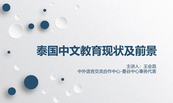 本次讲座,王会昌代表以泰国中文教育现状及前景为题,首先介绍了泰国国情和教育体系、泰国中小学教育制度及课程设置情况,特别讲解了泰国各界对中文教育的支持与推动,中泰合作下泰国中文教育所取得的各项成就。随后,王代表强调了当前新时期发展下,泰国中文教育正面临着全新的机遇和挑战,特别是泰国社会对高层次中文人才的需求正持续增加,需要更多的热爱中文教学事业的同仁共同参与到泰国中文人才培养的事业中来。最后,王会昌代表呼吁中泰双方需互相合作,发挥各自的优势,利用网络技术,为泰国中文教育提供更多的渠道和资源。