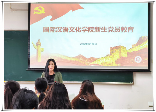 党委书记黄美旭以“当前政治经济形势下汉语国际教育如何转型”为主题,为新生党员展开了开学第一课。黄美旭书记系统阐述了改革开放对汉语国际教育发展的推动作用,详细讲解了学院、基地合作办学的发展情况。她提出,作为党员,要以包容态度看待跨文化交际中的冲突,不盲从于舆论热点,时刻保持冷静思考。与此同时,各位党员同志更要把握“中文+”的重要趋势,结合自身专业优势与社会热点助力学校国际化,勇挑重担、独立思考,坚持人文关怀,做好各项工作,形成品牌特色,打响学校、学院招牌,让更多人爱上中国,爱上华师大。